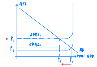 However, minimum wage may in turn worsen income inequality as sectors like the aforementioned cleaning and security are often easily replaceable by automation and robots. Robotic surveillance and robotic cleaning technology make the demand for low-skilled labour very price elastic. Thus, an increase in wages due to the minimum wage law of the progressive wage model may cause a more than proportionate decrease in demand for low-skilled labour, thus resulting in unemployment, further exacerbating the widening income gap. The income gap will be magnified as low-skilled workers will still be able to bring home some income initially without the minimum wage law. With the minimum wage law implemented and low-skilled workers getting replaced with automation, these retrenched low-skilled workers have zero income, thus worsening the income inequality even further. Furthermore, implementing a minimum wage law may also lead to unintended consequences such as stagflation. Minimum wage law increases the cost of production of firms, leading to a fall in short-run aggregate supply (SRAS), shifting the SRAS curve upwards from SRAS0 to SRAS1. This leads to an increase in the general price level from P0 to P1 and a fall in national income from Y0 to Y1, leading to stagflation.