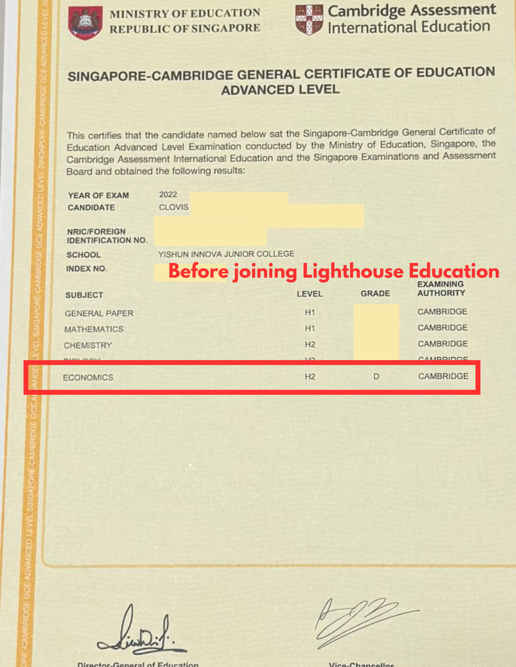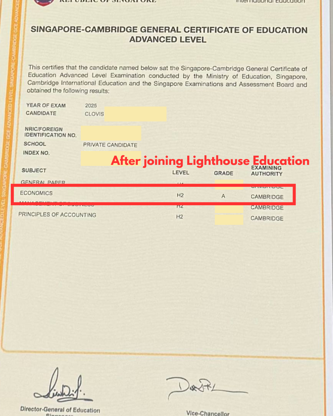 I would definitely recommend Lighthouse to anyone that has the slightest doubt about their study methods and academic ability towards the A'level examinations. With the physical and mental support that Lighthouse Education can provide, I'm confident that anyone can pull up their grades significantly within a short period of time!